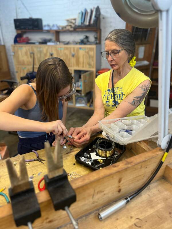 Jeannine has been teaching metalworking and jewelry classes for youth at VisArts since 2013. This summer, she is spending seven weeks teaching a variety of metals and jewelry classes with our ArtVenture campers. We’re halfway through the summer now, and we caught up with Jeannine to learn more about her experience as a teacher here at camp.