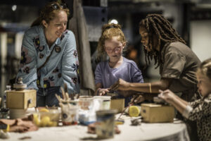 Craft + Design’s expanded Education Wing presented by Richmond Family Magazine spread out in the north annex of Main Street Station this year. The VisArts education team created a space that offered free, hands-on art experiences for Craft + Design attendees and the general public. Families, kids, and adults made art throughout the weekend that was themed to different media like clay, fiber, painting and drawing, jewelry and printmaking. VisArts’ education team also hosted special artist demonstrations throughout the weekend thanks to generous support from Claris Financial.