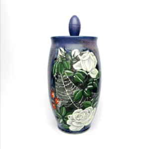 ceramic pot with painted with tattoo art