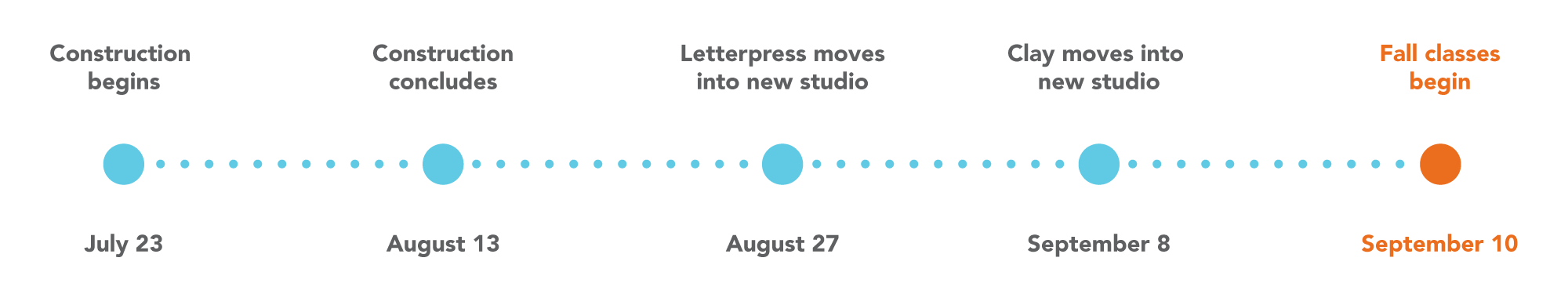 The Visual Arts Center of Richmond has kicked off a construction project that will add an additional art studio to the facility. Construction begins on July 23 and includes: the consolidation of staff offices, the creation of the new Vivian Keasler Letterpress + Books Arts Studio and the transformation of the current letterpress studio into a third clay studio.